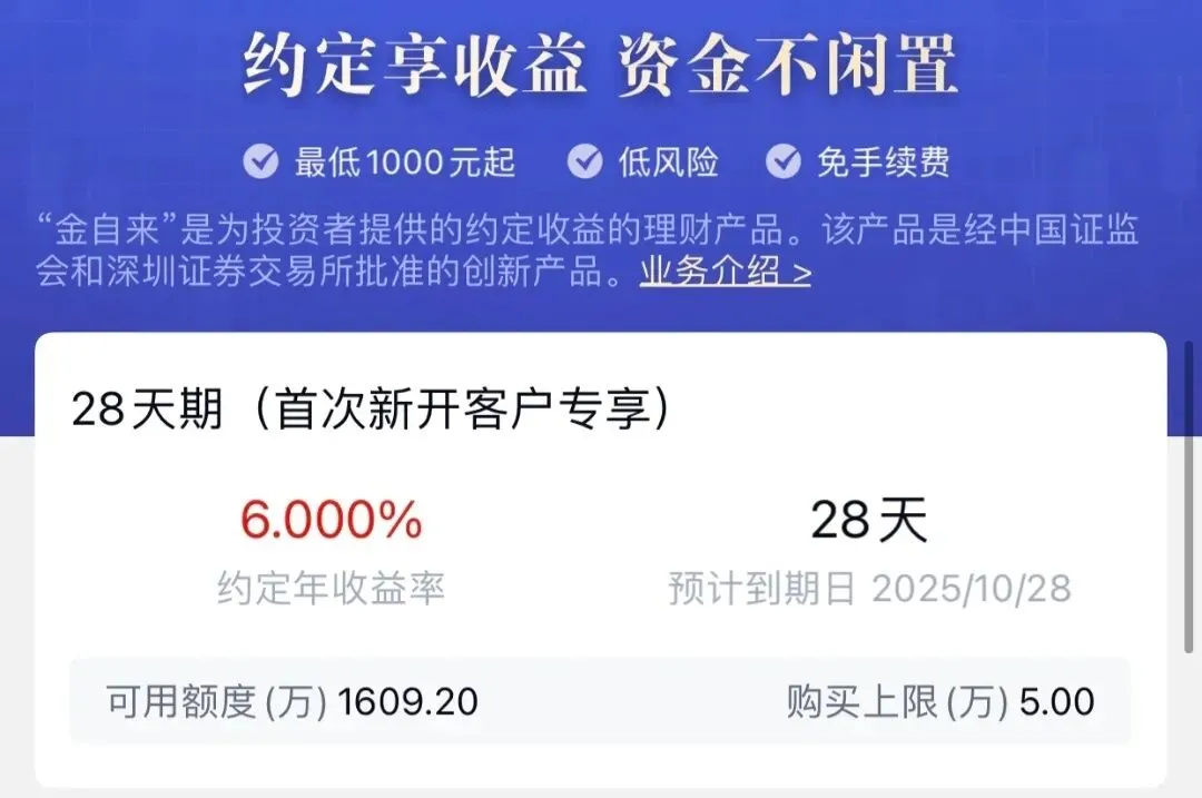 是持牌证券公司为吸引首次开户新客户推出的专属短期理财福利。