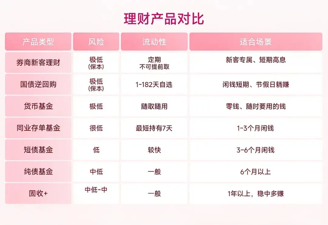 一句话记:安全、保本、短期、自动到账的“闲钱躺赚工具”。