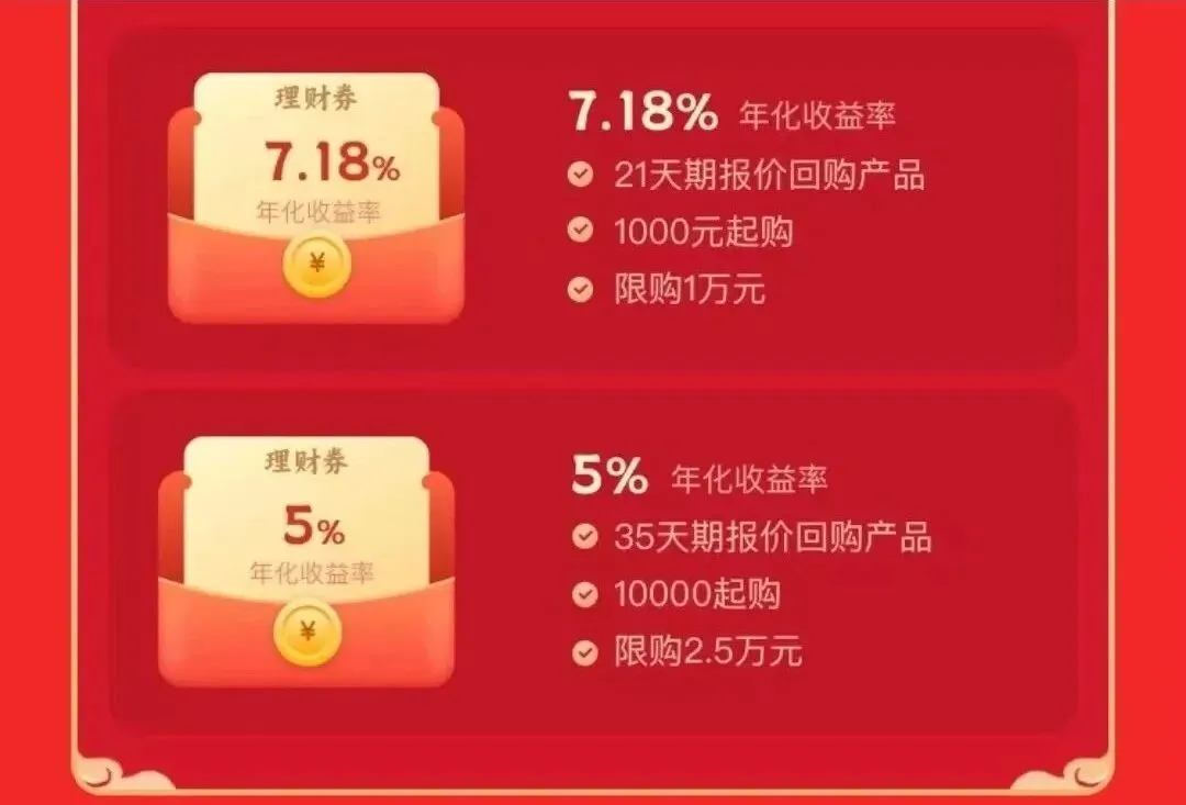 活动规则:每个交易日1次砸金蛋机会,抽取以下两类理财券: