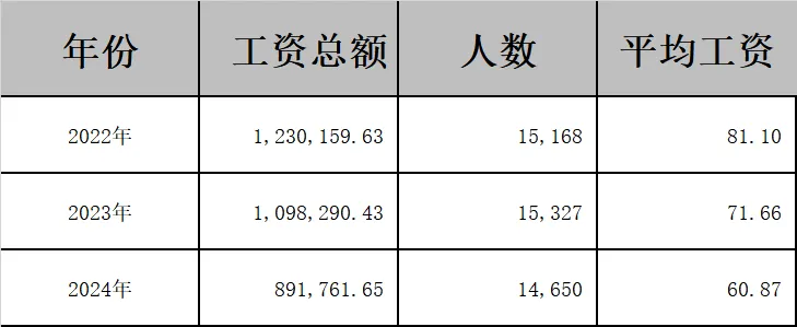 注:工资总额取“应付职工薪酬-工资、奖金、津贴和补贴”科目借方发生额(即当年实际发放数);人数取报告期末在岗员工人数(各年度无较大差异);无加权平均人数,计算出的平均工资仅供参考。4.原因推测: