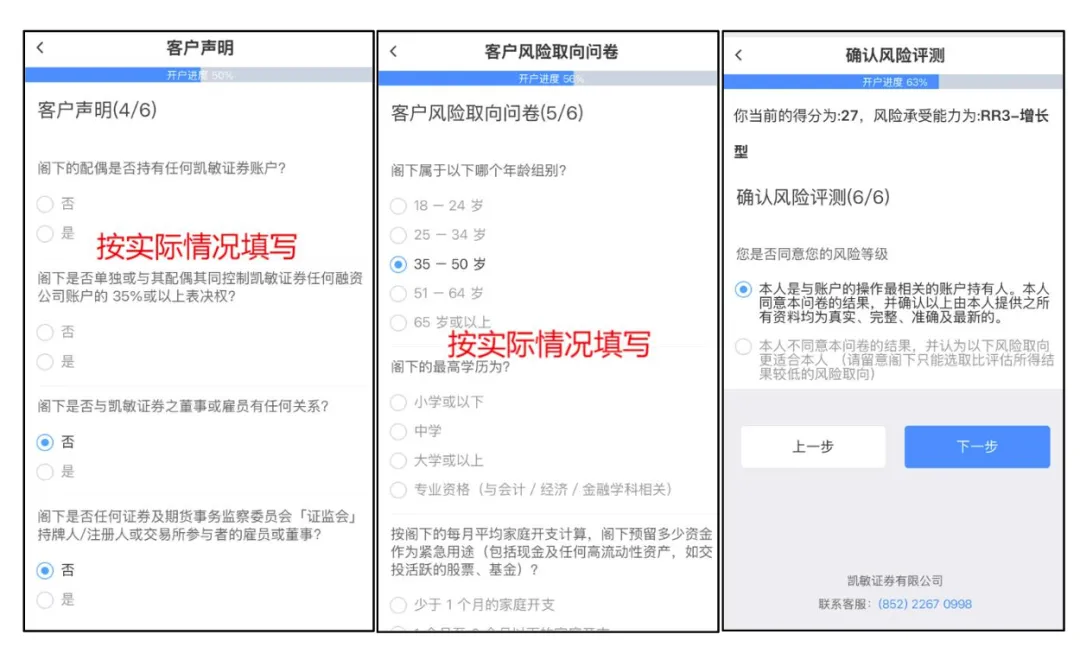填写个人信息:按以下方式填写可最简化流程: 出生地区按实际填写 “地址与住宅地址相同”选“是” 银行信息可暂不填写 就业情况可选“待业” 财务与投资调查:完成财务情况、投资经验问卷及客户声明。勾选是否接收营销邮件(按个人意愿选择)。注意:若上一步选“待业”,此处收入来源请勿选择“薪资”。 投资经验与风险披露:阅读并确认相关文件。见证方式建议选择“电子见证”。