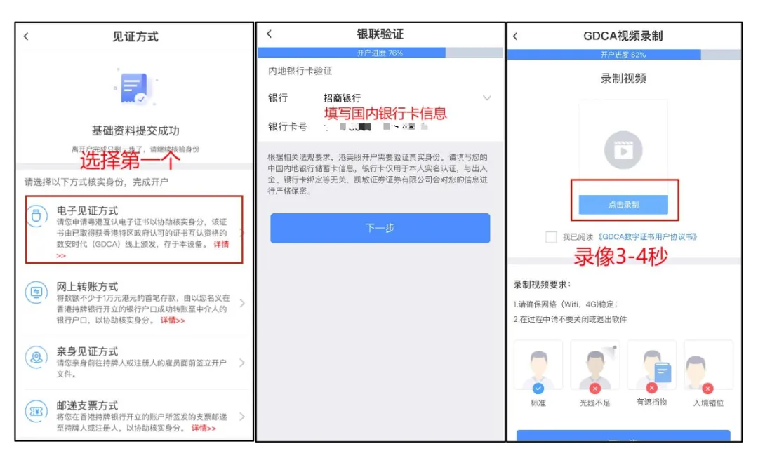 身份验证:输入内地银行卡卡号进行验证(确保该银行卡预留手机号与注册手机号一致)。录制2-3秒验证视频,完成电子签名。若验证失败,请尝试在光线充足的环境下重试。
