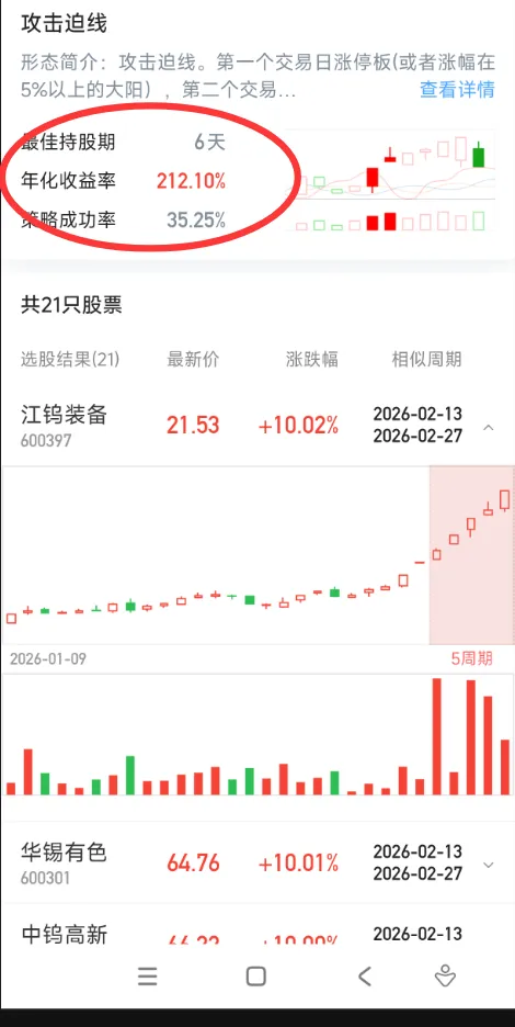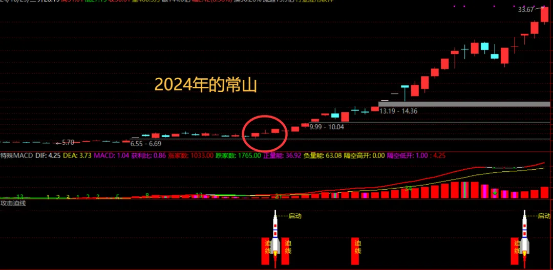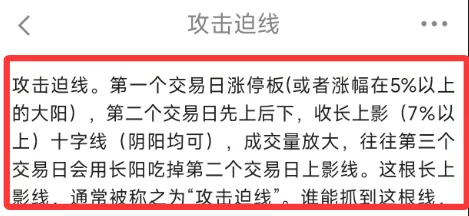 攻击迫线是一种经典的短线看涨K线组合形态。它通常出现在个股的上升途中,被视为主力资金在拉升过程中的一种强势洗盘行为,后续股价大概率会继续上涨。