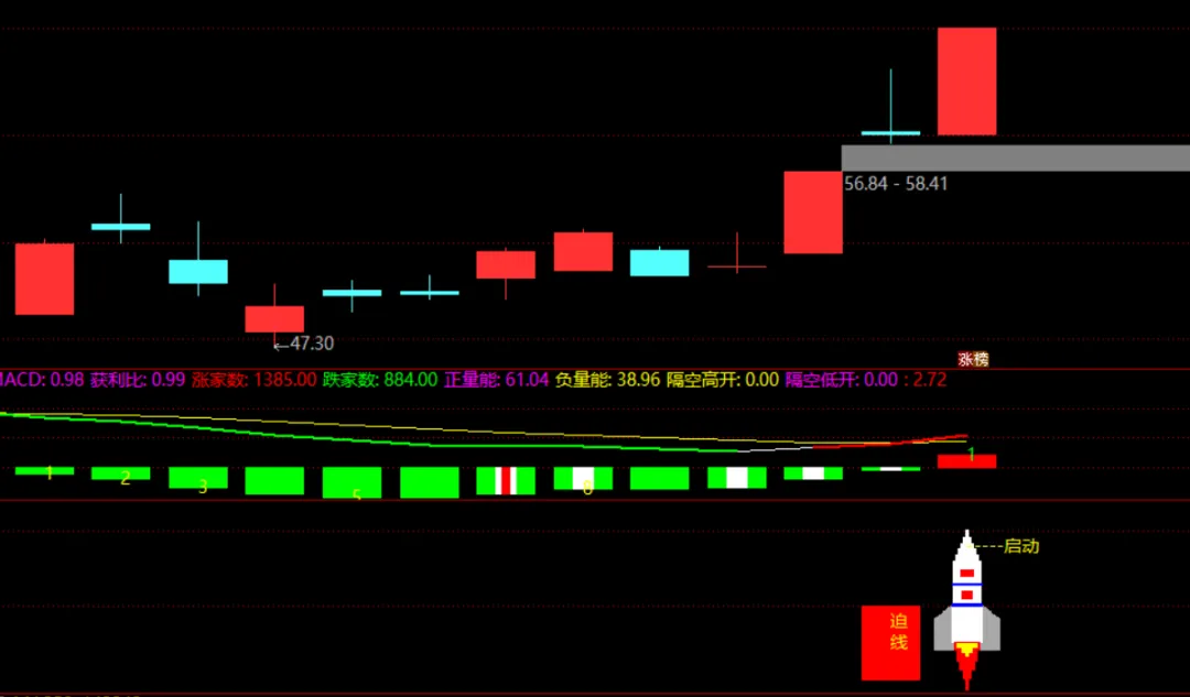 第二日(被迫回撤):股价先是大幅冲高(形成7个点以上的长上影线),但随后受到抛压回落,最终收出一根实体很小的十字星(阴阳皆可)。这根带有长上影线的小K线就是迫线,看起来像是多方进攻受阻,被迫撤退。