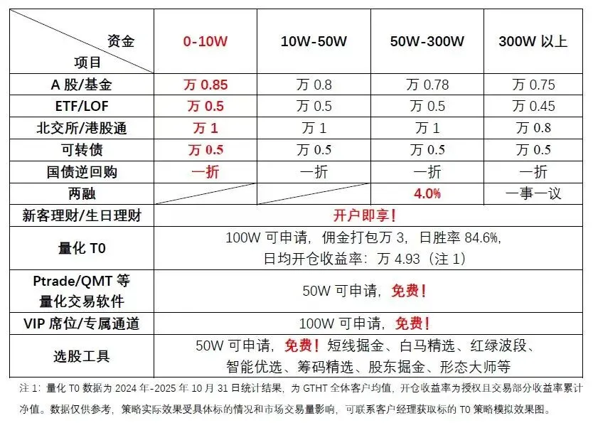 入金10万可申请万0.8免5,ETF万0.5免5,0元起收