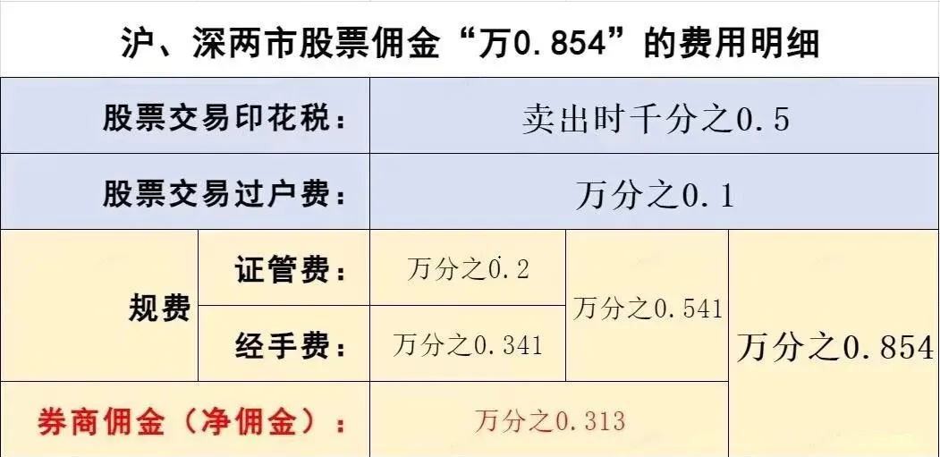 =证管费(固定万0.2)+经手费(固定万0.341)+净佣金(万0.313可调)