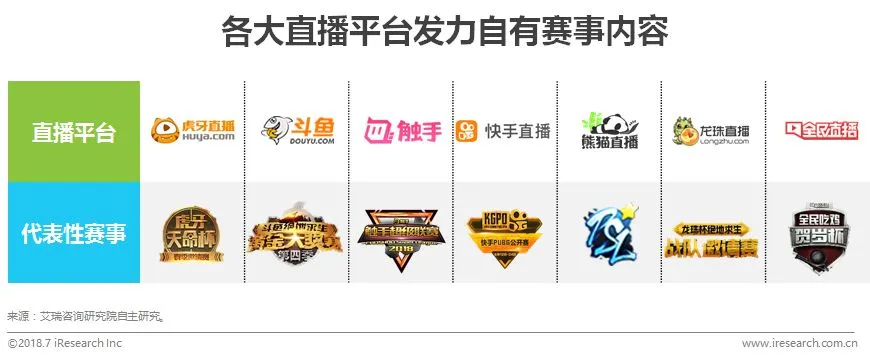 除了国际顶级赛事外,游戏直播平台为获得更强大的内容阵容,纷纷斥资制作自有赛事,以期获得独家赛事内容。其中,《绝地求生》成为炙手可热的赛事项目——各大游戏直播平台均举办该项目的平台冠名赛事,旨在通过高质量自有赛事内容吸引直播用户。随着游戏直播平台的持续竞争,预计各个平台将会持续推出质量不逊于顶级电竞赛事的平台独占自制电竞赛事。而赛事的质量将决定未来直播大战的内容成败。