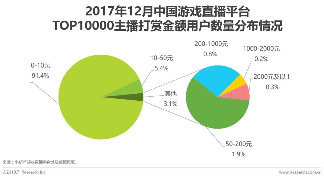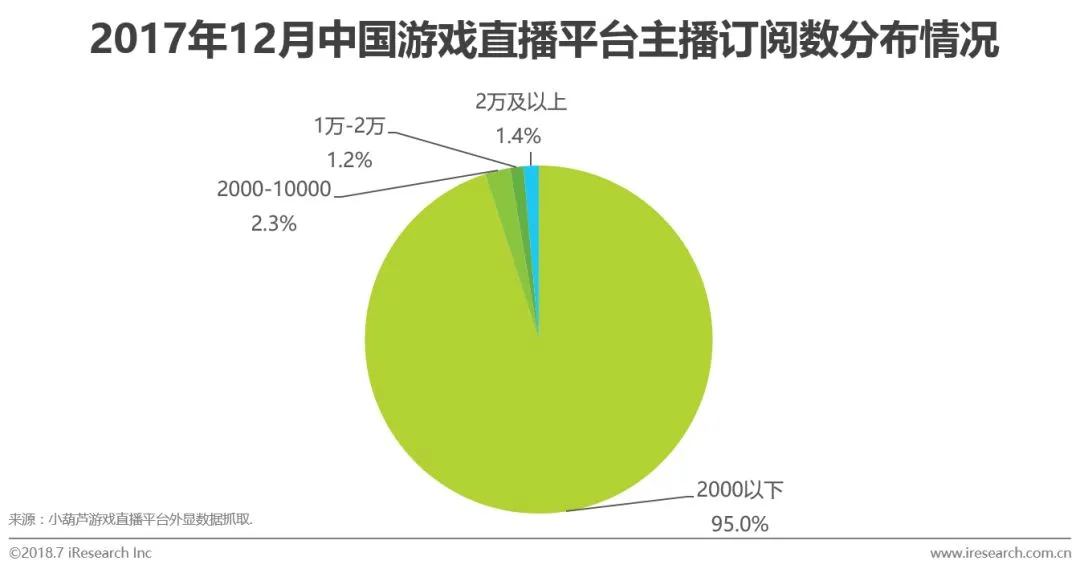 95%主播订阅数低于2000 小额打赏占绝对数量
