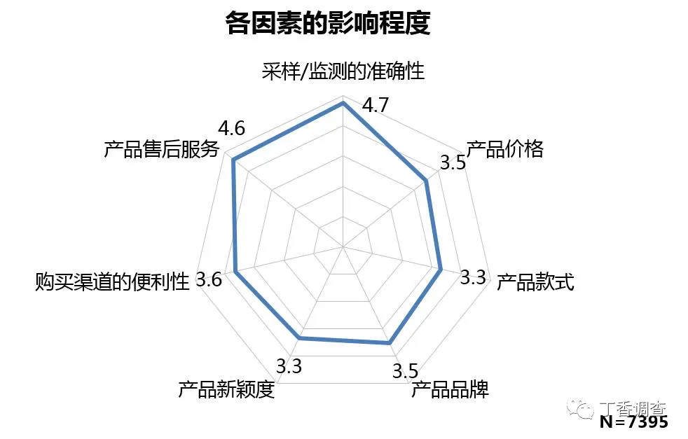 在影响医生购买的诸多影响因素中,影响力最大的是采样/监测的准确性,其次是产品售后服务。