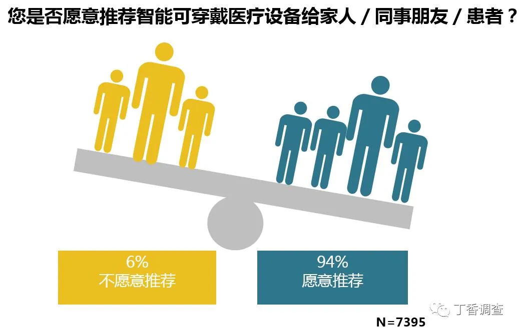 而其中,可穿戴医疗设备因其能满足长期预防监测疾病和健康状况的需求,尤其引人关注。医生作为医疗专业人士,对智能可穿戴医疗设备使用情况如何?对产品有什么专业意见?是否愿意向患者及周围人群推荐?