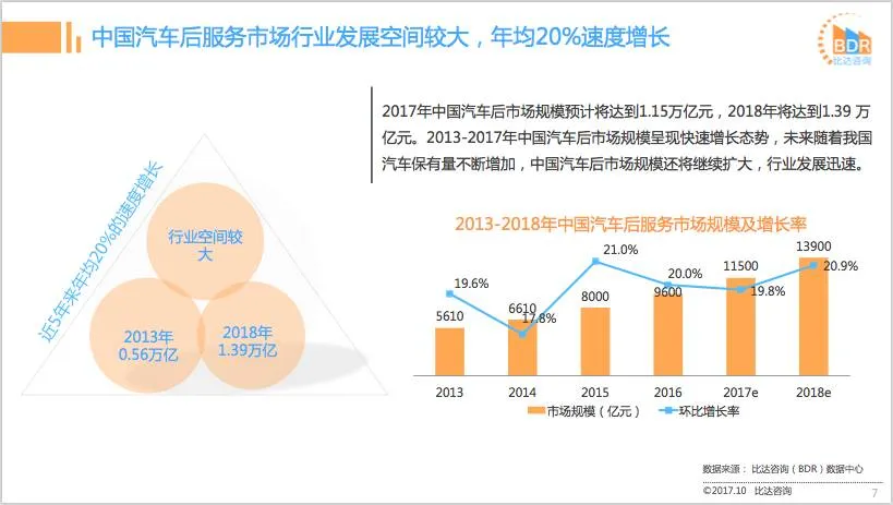 中国汽车后服务市场发展空间广阔,维修保养需求更高。