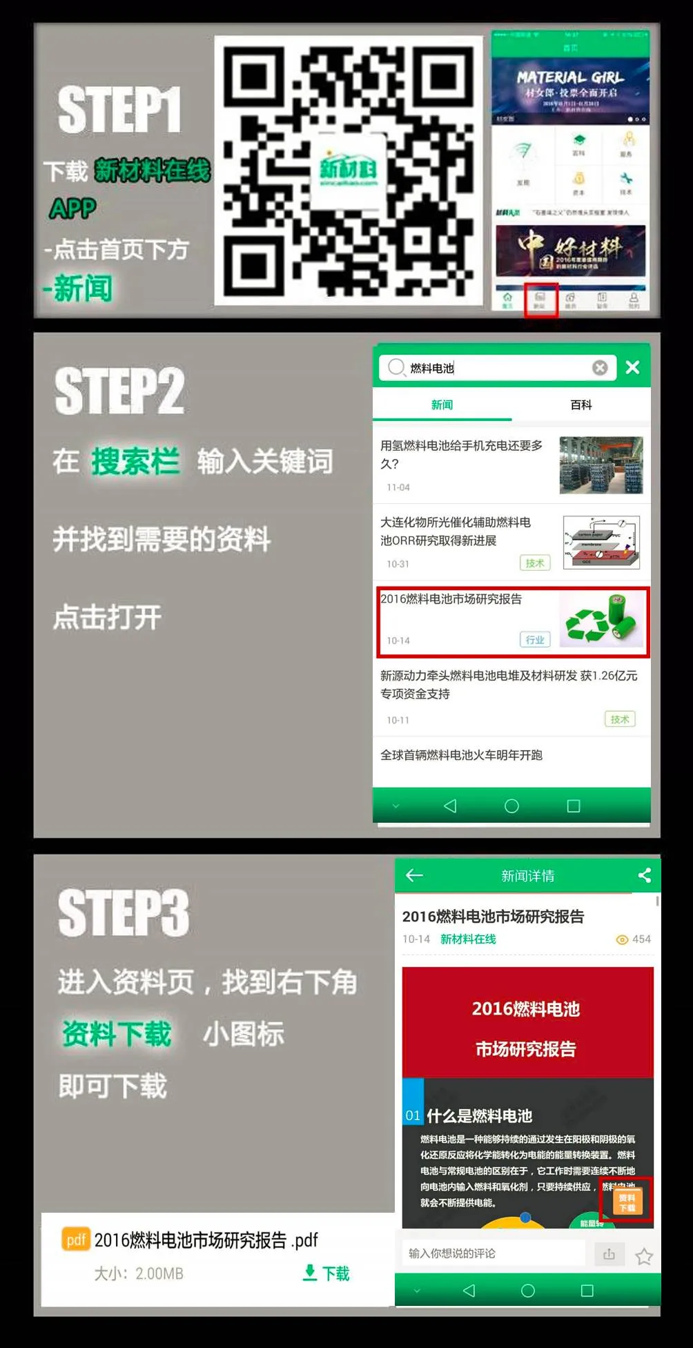 2016燃料电池市场研究报告欲想免费下载该研报高清PDF版,请上新材料在线app ↓↓↓↓↓来源:新材料在线,如需转载,请加小编微信:13510323202,并注明“媒体合作”。未经允许私自转载或未按照要求格式转载,新材料在线将保留追究其法律责任的权利。欢迎加入燃料电池群!请加群主微信:xincailiao_kefu2, 并备注:燃料电池群。↑↑↑长按加群主为好友新材料在线商务合作请联系:王小姐 0755-86060912(9:00-18:30)点击“阅读原文”下载app