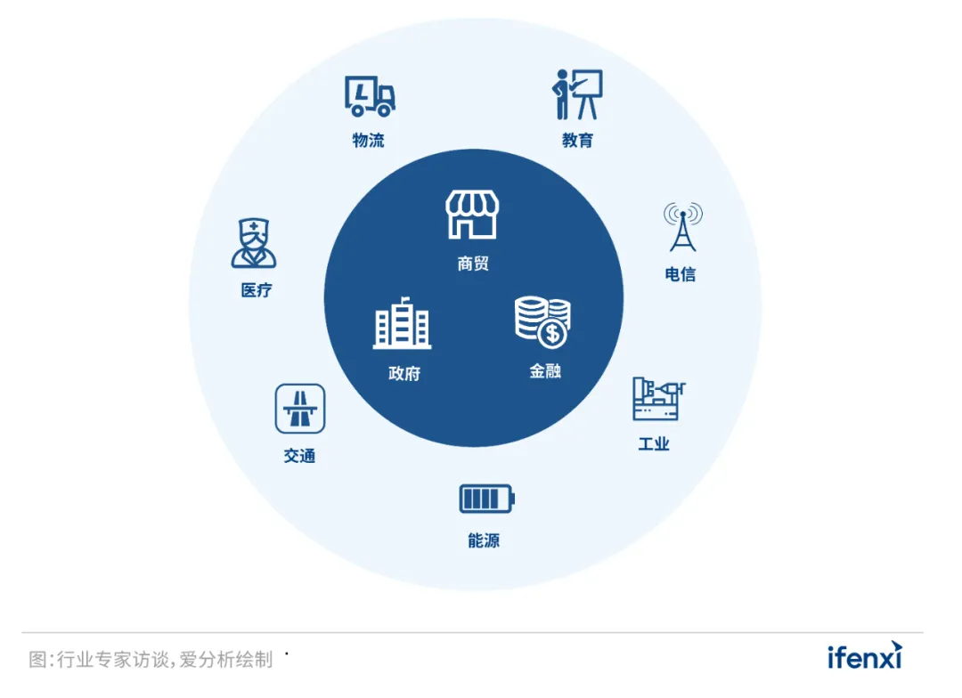 根据爱分析对行业头部企业调研,2021年SD-WAN市场四类目标客群的营收分布中,商贸企业与政府机构占比分别约为36.92%和28.16%,金融机构紧接其后,约为19.92%,其他行业企业约为15%。