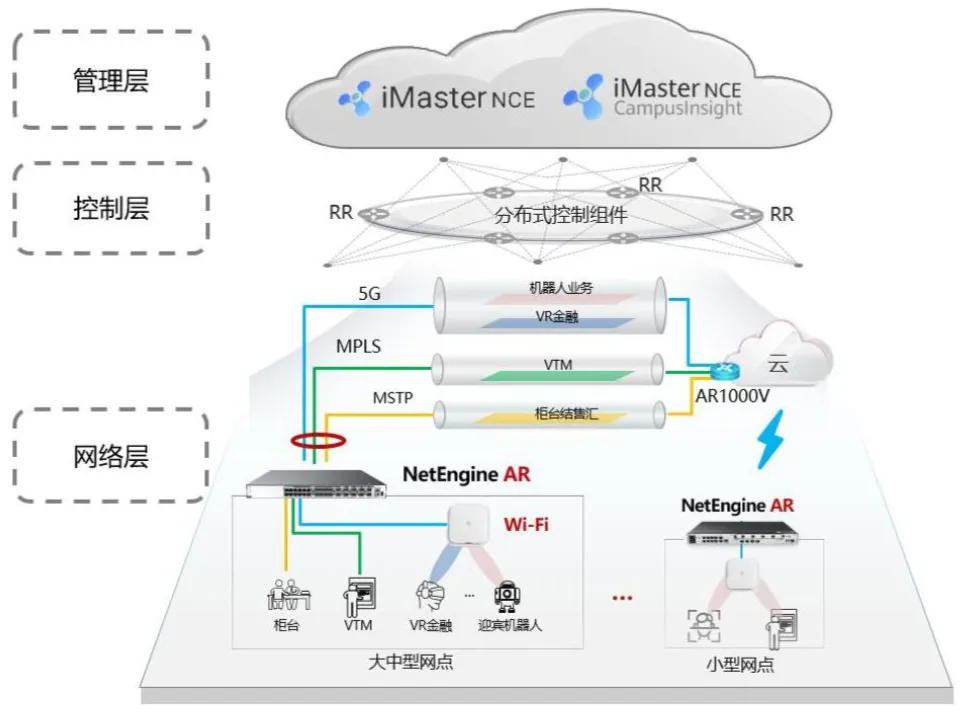 华为SD-WAN解决方案整体架构分为管理层、控制层、网络层三层。