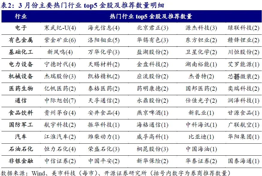 3月份券商金股特征解析