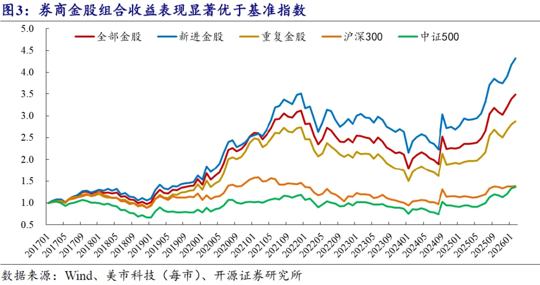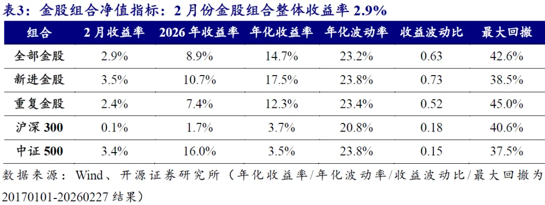 我们以全体金股、新进金股和重复金股为对象,组合内部按照券商推荐数量进行加权,计算各类金股组合最新收益表现(只保留A股,剔除港股;数据截至2026年2月27日,下同)。