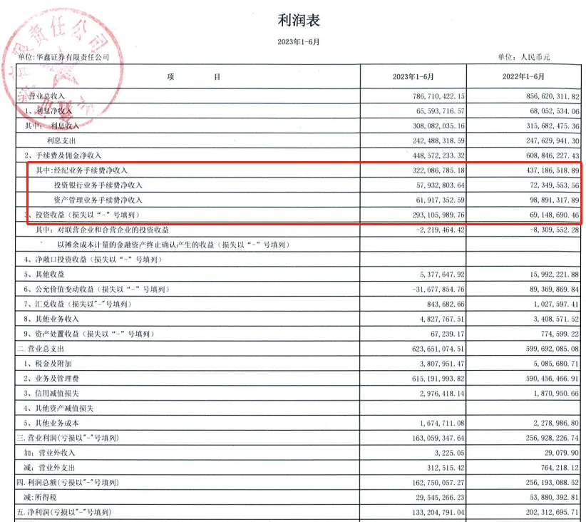 财报显示,华鑫证券今年上半年除了投资收益达到2.93亿元同比大增325%外,经纪业务、投行业务和资管业务收入悉数下滑。