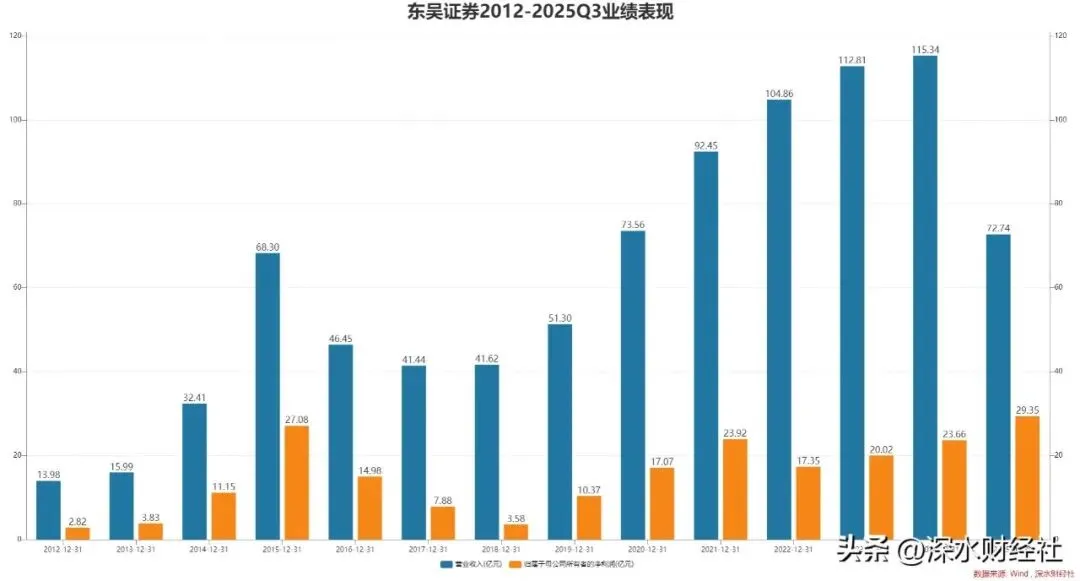 虽然东海证券规模不小,但是盈利能力尚可。2024年和2025年公司营收和盈利能力都连续大幅增长,并在长三角区域有较深的经营基本盘。