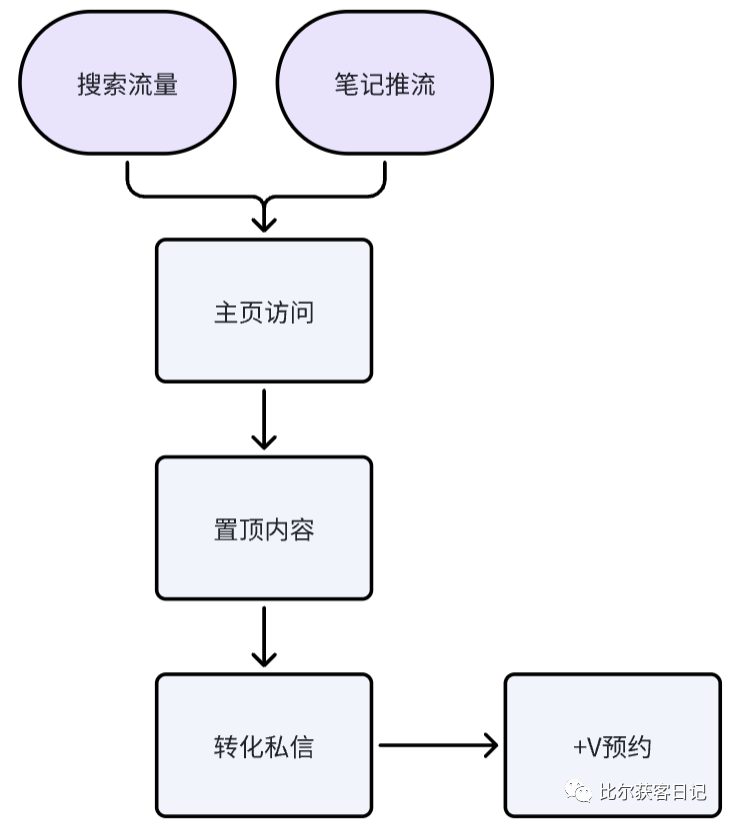 通过笔记就会有流量进来,另外通过我们已经做好的置顶内容就会有用户开始私信,所以这套模型针对内容端口只需要不断的根据上面的产品、用户选题更新内容就好了