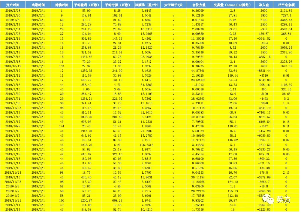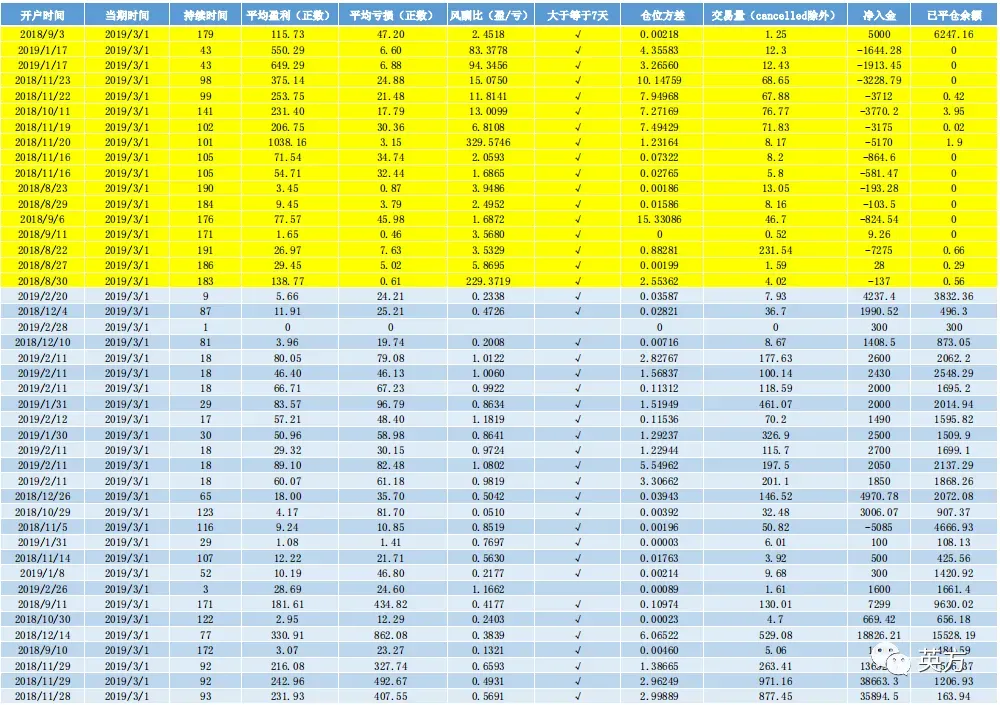 黄色的是风酬比大于1.5的账户信息;