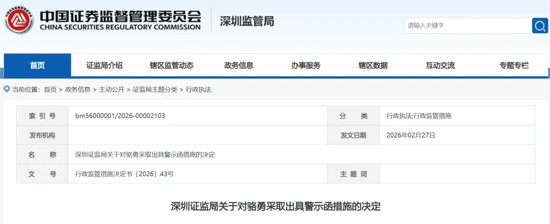 行政监管措施决定书〔2026〕42号: