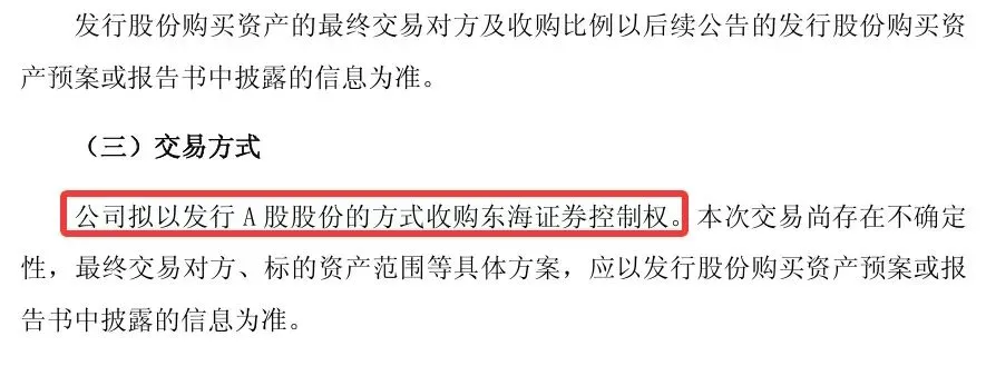 2026年3月1日,上交所主板上市公司东吴证券 (601555.SH)发布《关于筹划重大事项的停牌公告》。公告显示,该公司与常州投资集团有限公司签署《发行股份购买资产意向协议》,拟收购常州投集团持有的东海证券26.68%股权,以获得标的公司的控制权。常州投资集团为东海证券控股股东。