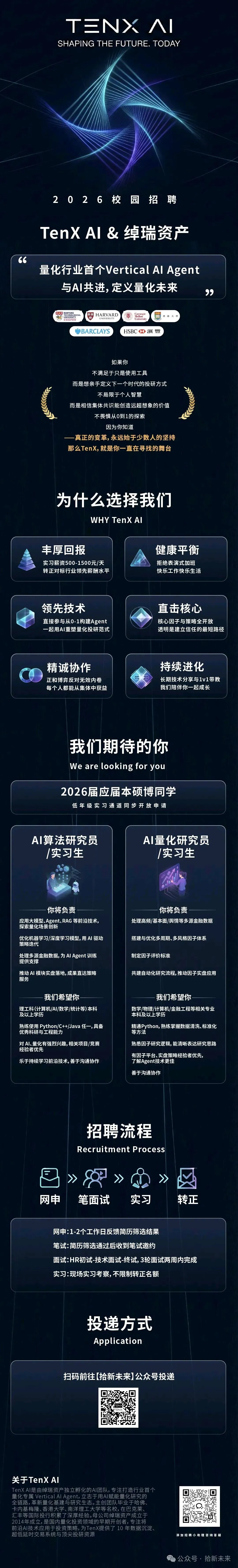 TenXAI 校招AI算法/量化研究员/实习生