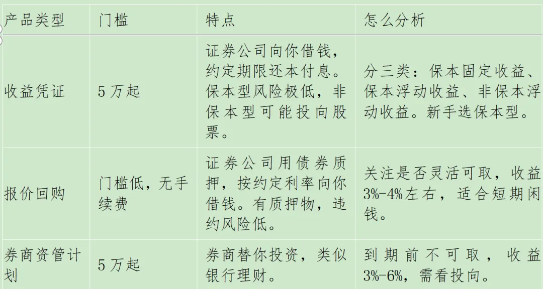 如果你有证券账户(股票账户),别只盯着炒股。券商自己也会发行一些理财产品,风险比股票低,收益比货币基金高。
