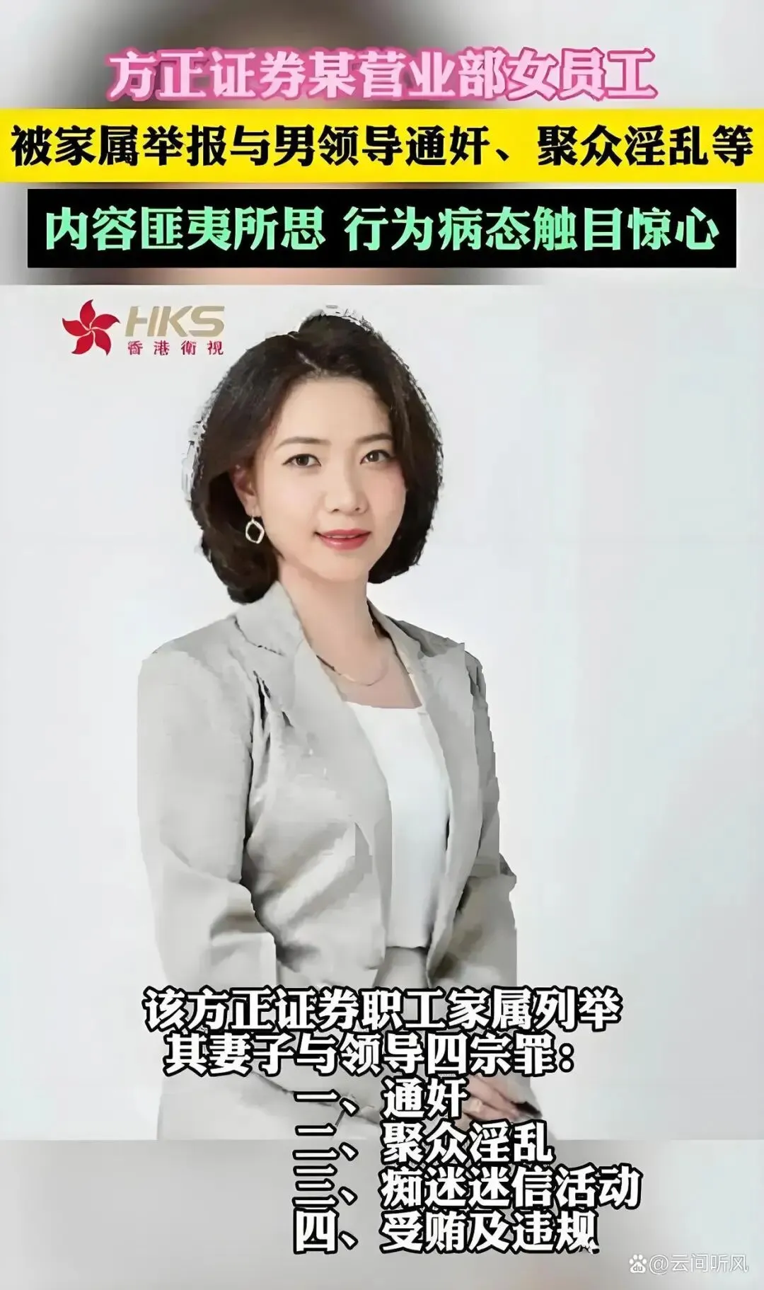 如今却沦为的“失德高管”,利用职权威逼利诱小鲜肉下属献身,婚内出轨被丈夫当场抓奸,酒店里的炸裂场面全网疯传,最终落得工作难保、婚姻破碎的下场,情节比电视剧还要狗血,看完令人三观震碎。