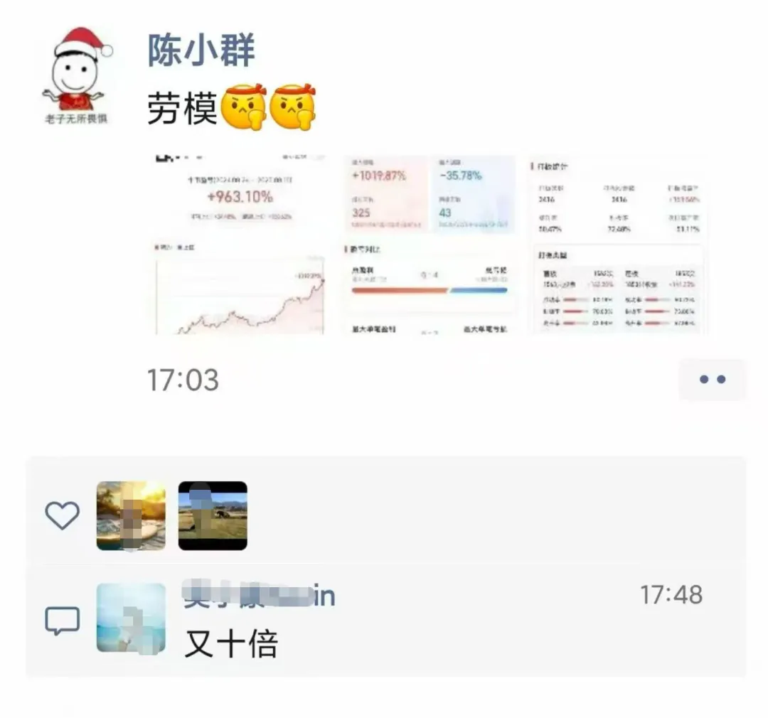 大瓜!券商研究员和顶级游资的瓜直接吃瓜1、券商研究员刚发完朋友圈,然后就开始找工作了。。。。2、顶级游资又10倍昨天,顶级游资陈小群发朋友圈了,晒了自己的收益截图,并自夸“劳模”。数据显示:陈小群去年924以来收益率高达963.1%。。。。。。3、李大霄:傻子都知道牛市来了。。。。
