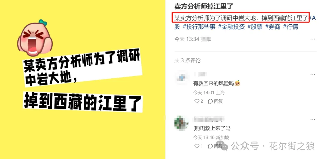 大瓜!券商首席分析师的瓜几个事情:1、券商分析师纷纷上岸税务局。。。。。2、券商首席分析师转行吃瓜师10余年的专业研究经验,原券商食品饮料首席分析师现转行“首席吃瓜师”。。。3、券商研究所所长跳槽养老基金券商人事爆料:甬兴证券研究所所长郭雨淅拟离职,据了解其下一站或将加盟长江养老,拟负责是长江养老资管业务条线的部分市场相关工作。。。。。。4、券商分析师掉江里了某卖方分析师为了调研中岩大地,掉到西藏的江里了。。。。。防失联,赶快关注备用号