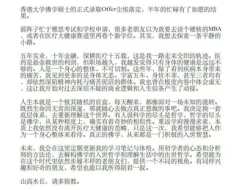 我个人觉得,郑薇这样的前首席,读完是不会出家的,只是学点东西,打发下时间,找一些人生寄托。