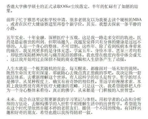 近日,金融圈流传出一则特殊的录取通知书:前国联民生证券医药首席分析师郑薇,已正式收到香港大学文学院的录取通知,将于2026年9月入学,攻读全日制佛学硕士。
