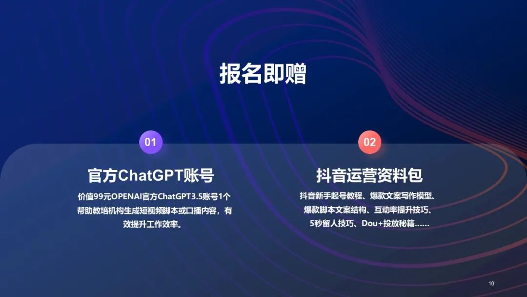 第二天的课程主要是教大家如何去创作拍摄脚本或者口播内容,爆款的内容的公式和写作技巧。如何用Chatgpt去高效的创作内容等。(报名是赠送chatgpt账号的)