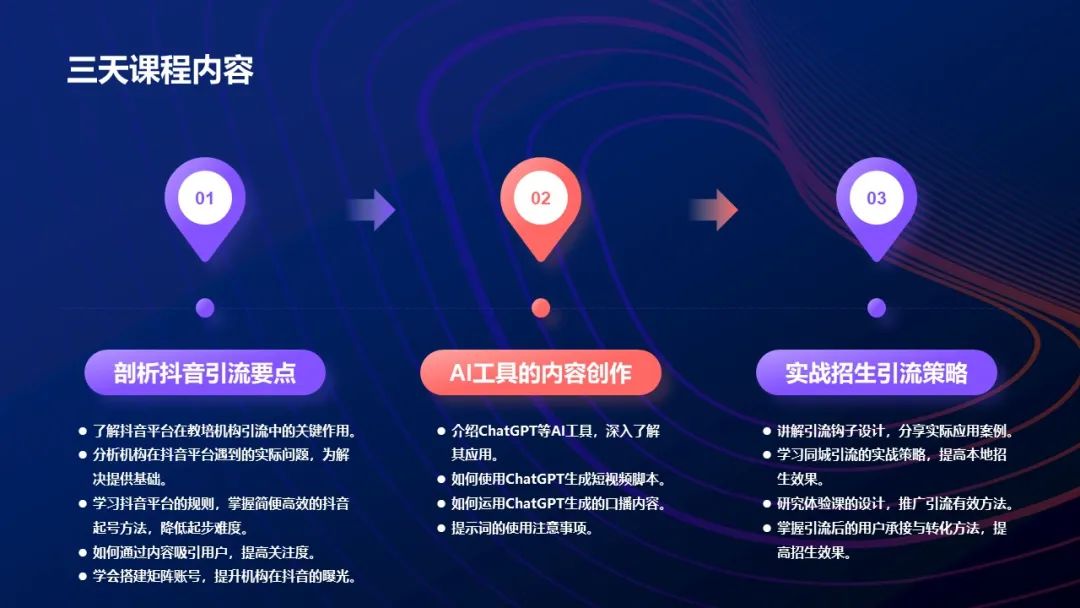 第三天主要是去讲怎么做同城引流,怎么跟竞品打造出差异,引流的钩子设计,用户承接等方法。