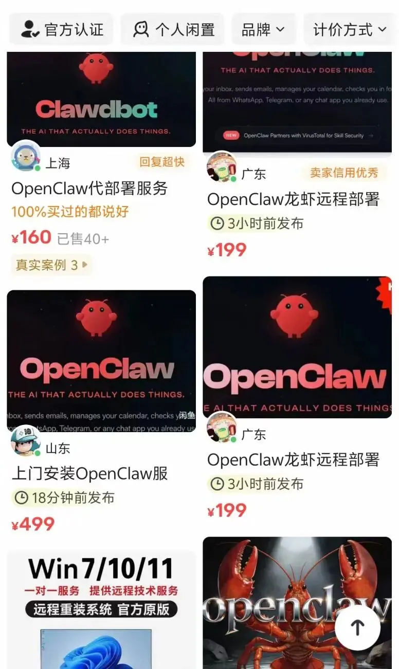 那些急切盼望着安装它的用户,俗称“养虾人”。近日,在闲鱼、小红书上,出现了大量“上门安装龙虾”的付费服务,开价普遍在几十元到几百元之间。