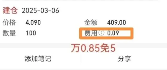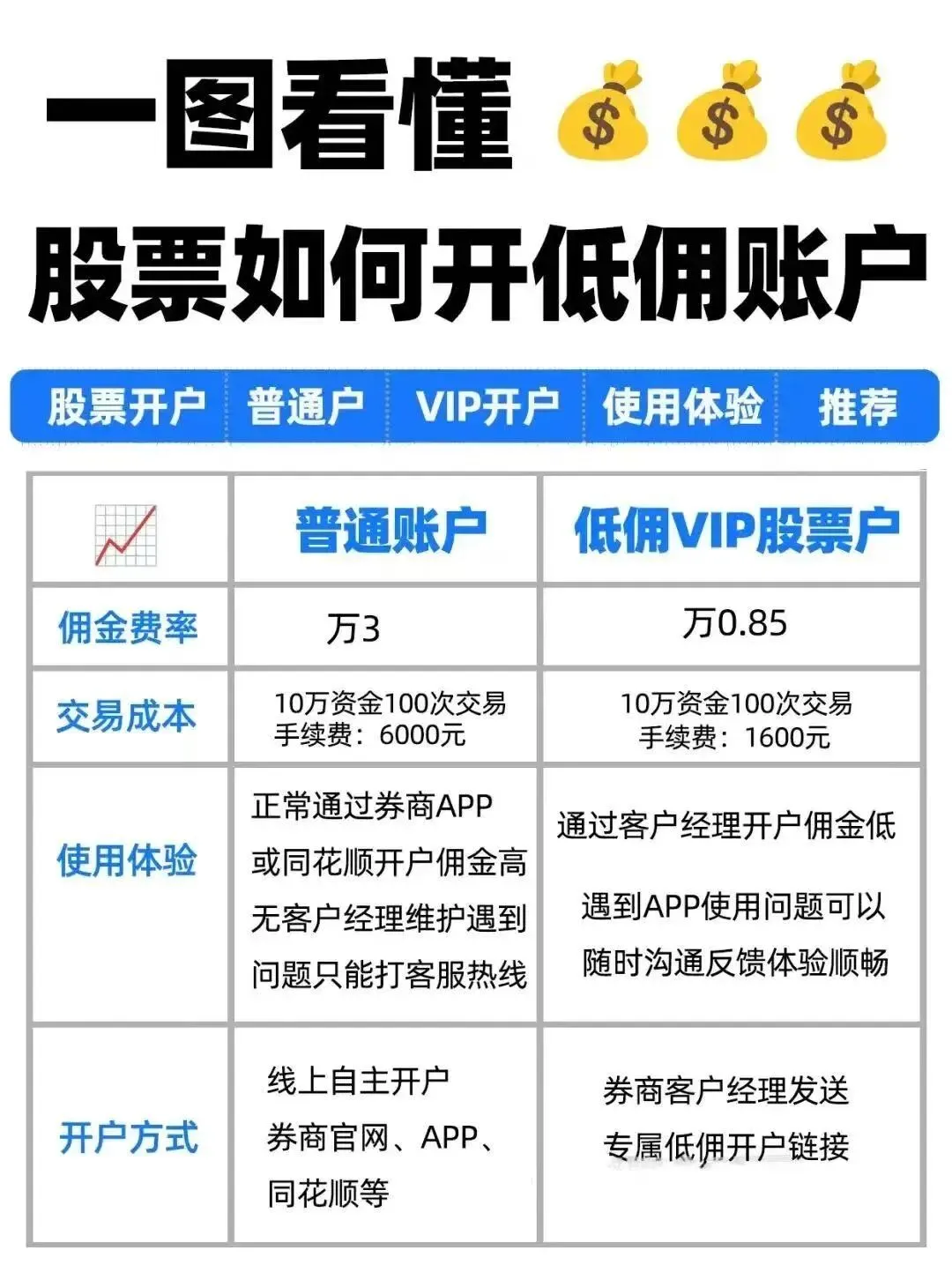 现在市场最低能做到万 0.85 免五,而且是全佣(包含规费),比默认万 2.5 开户省 60% 以上!
