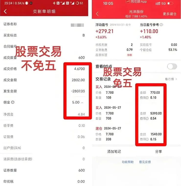 我身边很多朋友大资金也都是要求免五,这样子做T会更方便些。