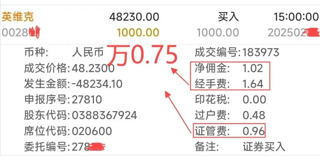 注意下,开通证券账户时候,与券商确认的佣金比例都是默认全佣的,也就是净佣金+规费,实际上最后手续费就是全佣+过户费+印花税。