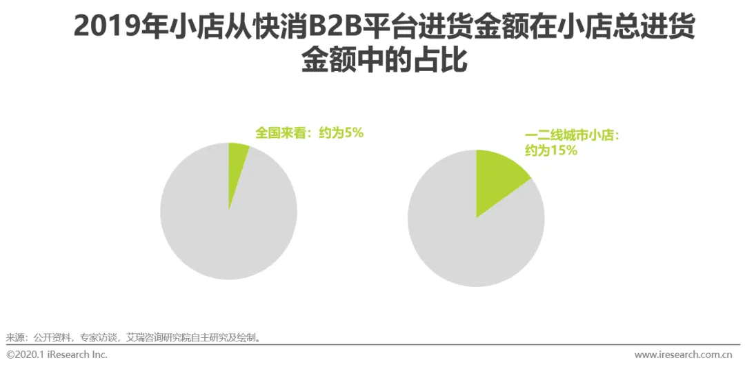 零售小店数据不完整的原因:1)平台对门店渗透率较低:目前小店从单个快消B2B平台进货金额在小店进货金额中占比较低,导致快消B2B平台难以获取小店的完整进货数据,数据价值有待提升。2)全国来看,小店从快消B2B平台的进货金额在小店进货金额中占比约为5%,一二线城市小店从快消B2B平台的进货金额占比稍高,约为15%。