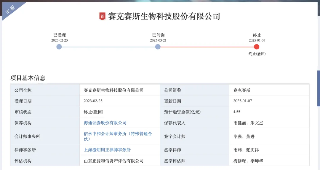 值得注意的是,赛克赛斯曾冲击科创板、深主板未果。其科创板IPO申请于2020年6月30日获受理,后因公司及保荐机构海通证券撤单,2020年12月8日IPO终止。