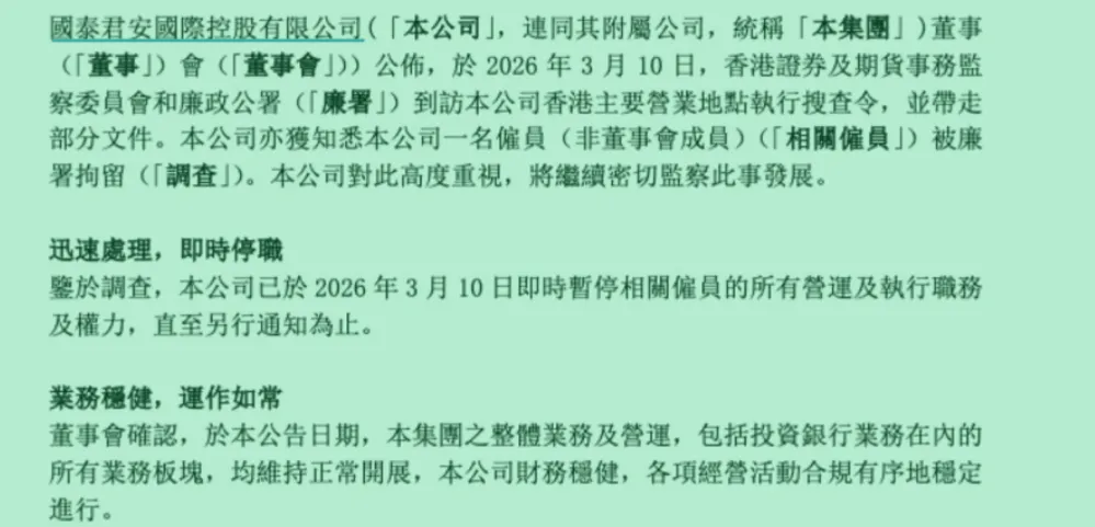 更令人震惊的是,国泰君安国际的ECM主管潘某鹏(Samuel Pan)当场被带走。这位在港股IPO市场摸爬滚打多年的资深操盘手,此刻正深陷漩涡中。