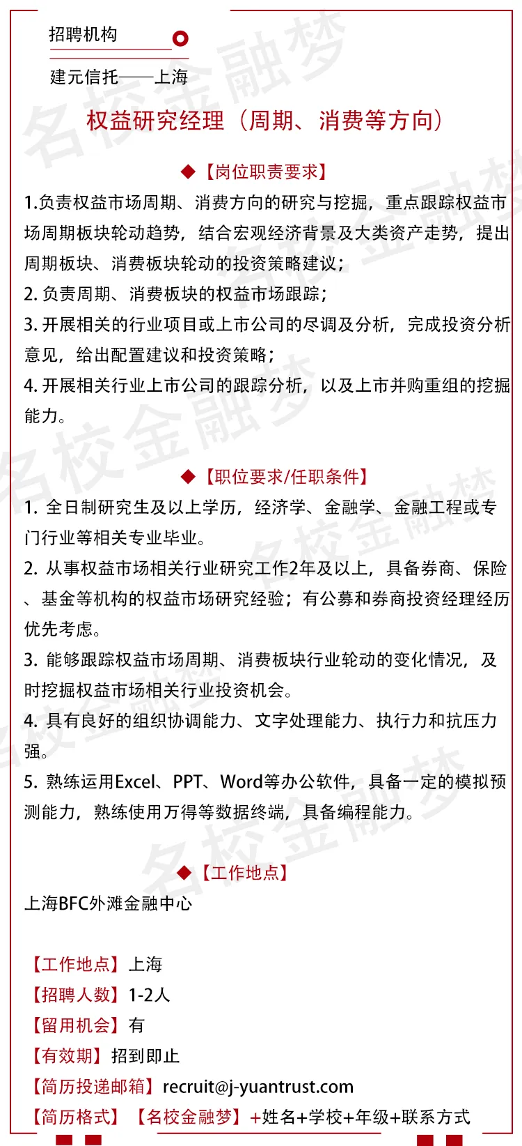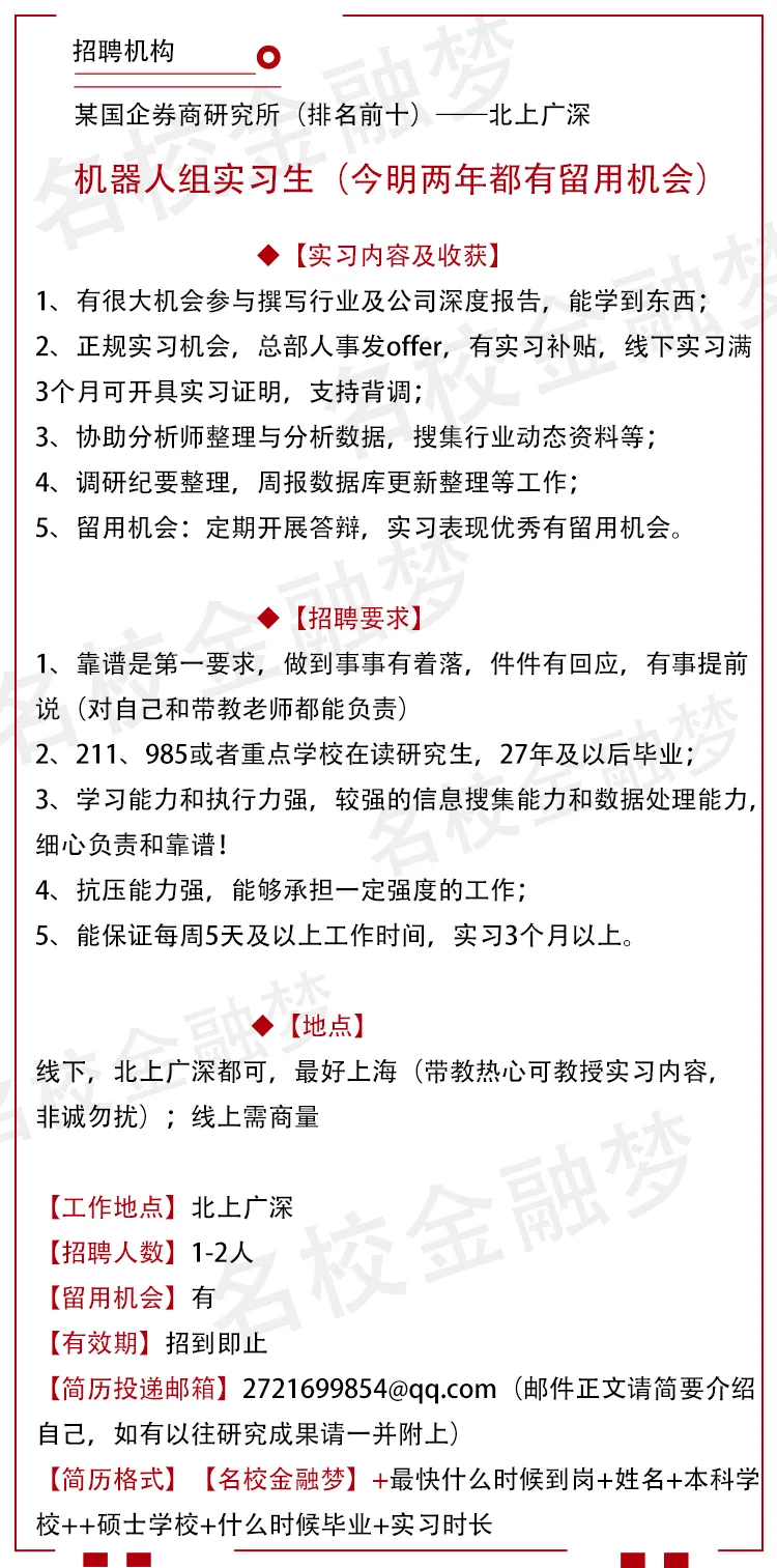 » (03/12)上海今日实习信息|某国企券商研究所(排名前十)、建元信托