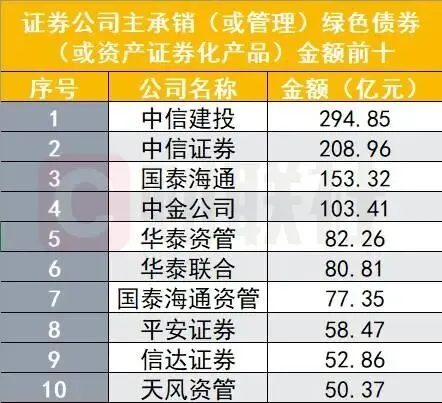 主承销(或管理)绿色债券(或资产证券化产品)金额方面,中信建投、中信证券、国泰海通、中金公司主承销金额超百亿。第五名为华泰资管(82.26亿元),也是唯一一家位列绿色债券承销或管理前五的券商资管。
