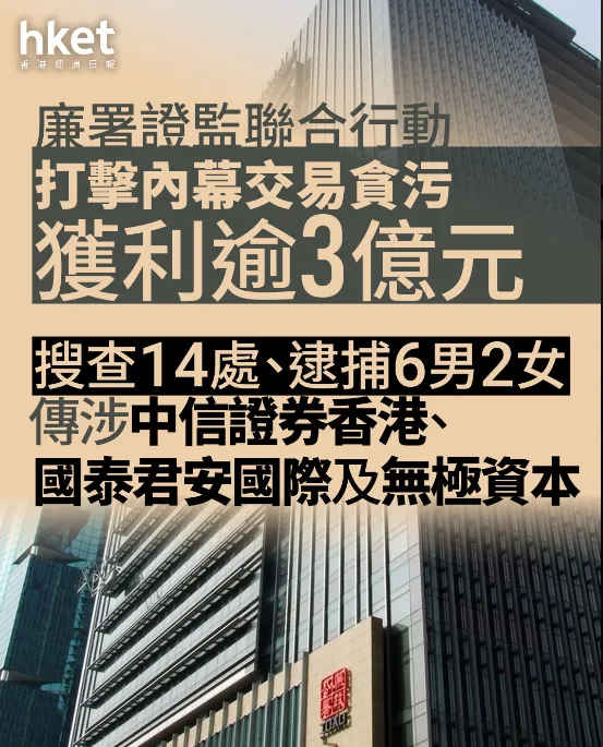 最近,香港金融圈发生了一场引发巨大震动的“巨震”——香港廉政公署(ICAC)与证监会(SFC)罕见展开代号为“Fuse(导火线)”的联合行动,直接逮捕了8名涉及内幕交易和贪污的金融高管,其中不仅有知名对冲基金经理,甚至牵扯出国泰君安等头部券商的投行高管。
