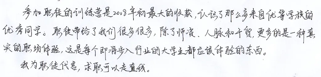 实训营的导师团队来自知名企业的中高层,这里有管理着数十亿规模的资金的基金经理,有新财富上榜的明星分析师,有上市公司的副总裁......醍醐灌顶般的交流契机,怎可错过。实训营有体系化的人才选拔标准,综合个人成就、学校学历、特长履历,既不拘一格又保证参与项目校友的优质性,届时你将与全球各地的精英一起并肩作战,与投资大咖面对面交流未来的职业发展,每年均有不少优秀的校友通过职徒的内推通道进入知名企业实习。
