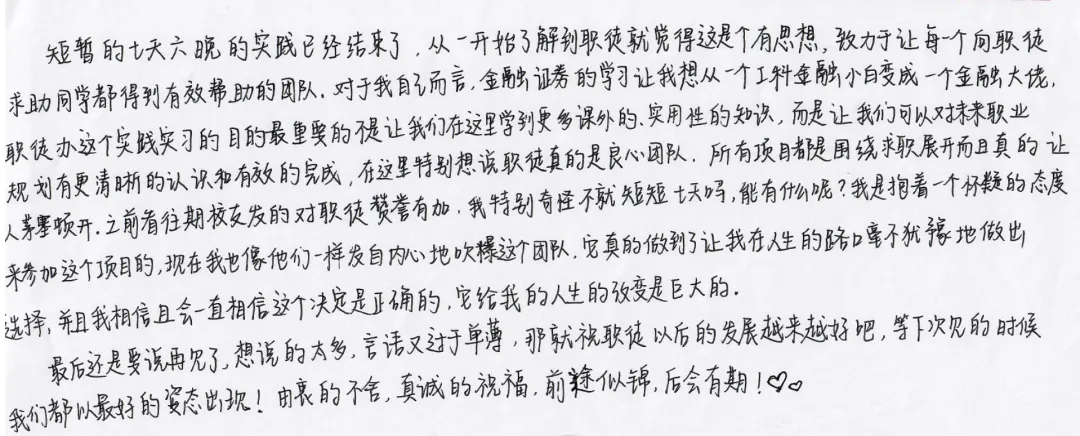 秉承“求职可以走直线”的愿景,专注于高校青年学子金融实习实践,职业规划辅导,校友覆盖了全球常春藤,985,211知名学府,已经发展成为全国最具影响力的金融实践机构之一,管理团队曾就职于JP.Morgan,花旗银行,上期所等国内外顶级金融机构,创始人武承泽先生当选为福布斯中国30岁以下精英榜人物。职徒精英计划作为重要的业务组成部分,无论在课程环节设计,导师机构合作,场地酒店选举均以行业标杆著称,校友的最高评价是:职徒是良心企业!快来和往期校友一起提升自我吧!