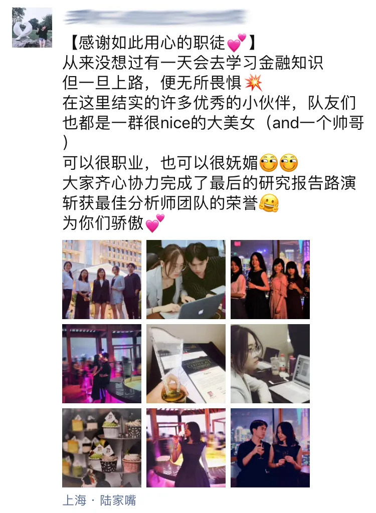 职徒证券投资分析训练营项目全程位于陆家嘴核心金融圈,在上市公司内部沉浸式学习体验,感受企业内部实习的真实场景,深入高档写字楼俯瞰窗外,整个陆家嘴景观尽收眼底,东方明珠清晰可见,随手一拍,全是大片即视感。