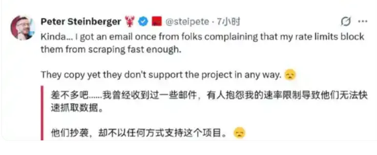 OpenClaw创始人吐槽腾讯抄袭