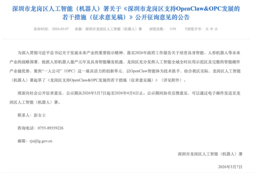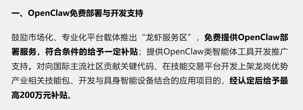 深圳龙岗率先发布“龙虾十条”,提出支持免费“养龙虾”,助力全球开发者“零成本启动”,并提供最高200万元补贴。